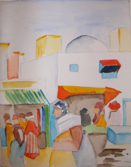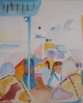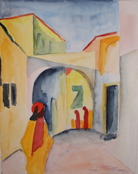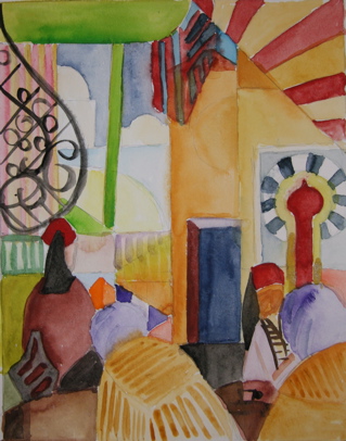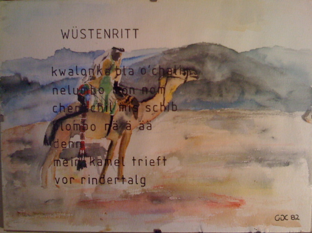 und da wusste ich noch nicht einmal, dass es die Tunisreise von Macke gibt ... Frühwerk aus meiner Abiturzeit (1982) inspiriert von einem Da Da - Gedicht :-). Wie es sich für einen ordentlichen Techie gehört schon damals mit technischem Zeichenstift von Rotring und ordentlicher Schriftschablone. PCs gab es damals ja noch nicht